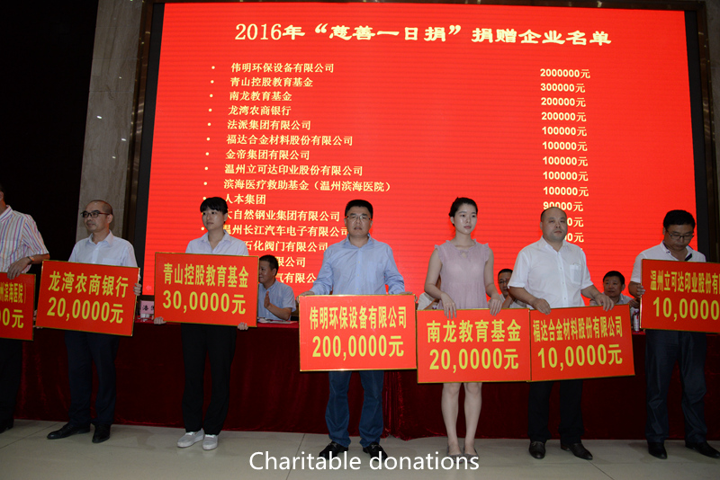 Weiming always keeps return to the society and social responsibilities in mind. In so far it has taken part in donations, educational support, charity, disaster relief donation, not-for-profit blood donation, and a range of other charitable activities. Meanwhile, Weiming has established “Ouhai Charity Federation Weiming Branch” and Weiming Charity Volunteer Force that incorporate public benefit and charity in its daily operation.