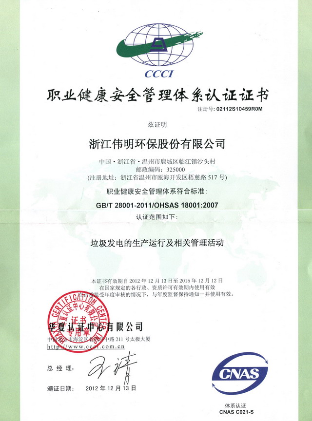 ZHEJIANG WEIMING ENVIRONMENT PROTECTION CO., LTD.