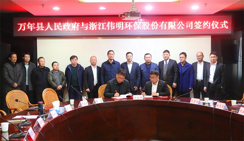In the afternoon of January 16, the Waste Incineration Power Generation Project in Wannian County, Jiangxi Province was signed. Pan Biaoguang, Party Secretary of Wannian County and President of Zhejiang Weiming Environment Protection Co., Ltd. Xiang Guangming entered the waste incineration power generation project in Wannian County. Wu Shujian, Deputy Party Secretary of Wannian County and County Chief, hosted the signing ceremony.