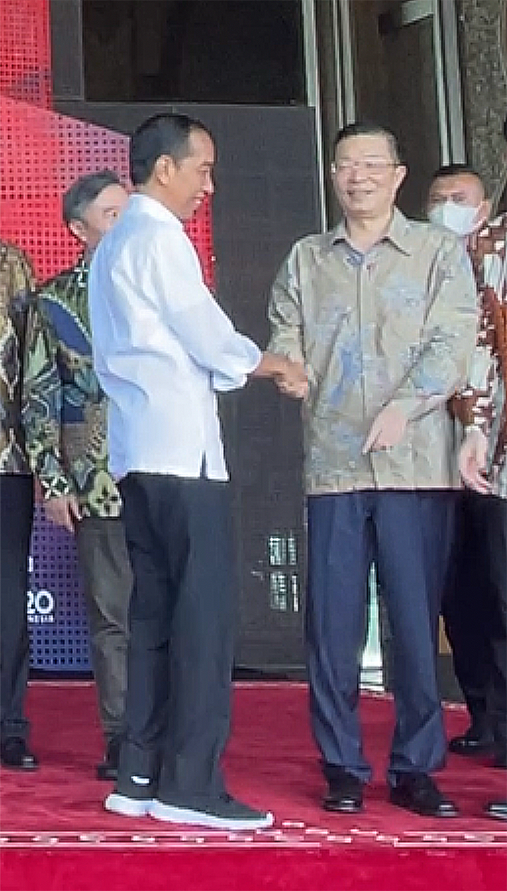 On the morning of November 17, during the G20 Summit in Bali, Indonesian President Joko Widodo met with Chinese entrepreneurs. Xiang Guangming, Chairman of Weiming Environment Protection, attended the meeting and engaged in a handshake and conversation with President Joko.