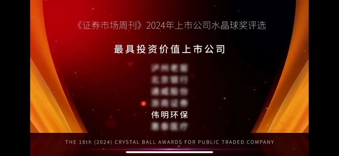 Recently, the China Association for Public Companies (CAPCO) announced the "Best and Outstanding Practices in 2023 Annual Performance Briefings" to encourage listed companies to enhance investor engagement, communicate corporate value, and promote the healthy development of capital markets. In this evaluation, Weiming Environment Protection was honored with the title of "Outstanding Practice in 2023 Annual Performance Briefing."