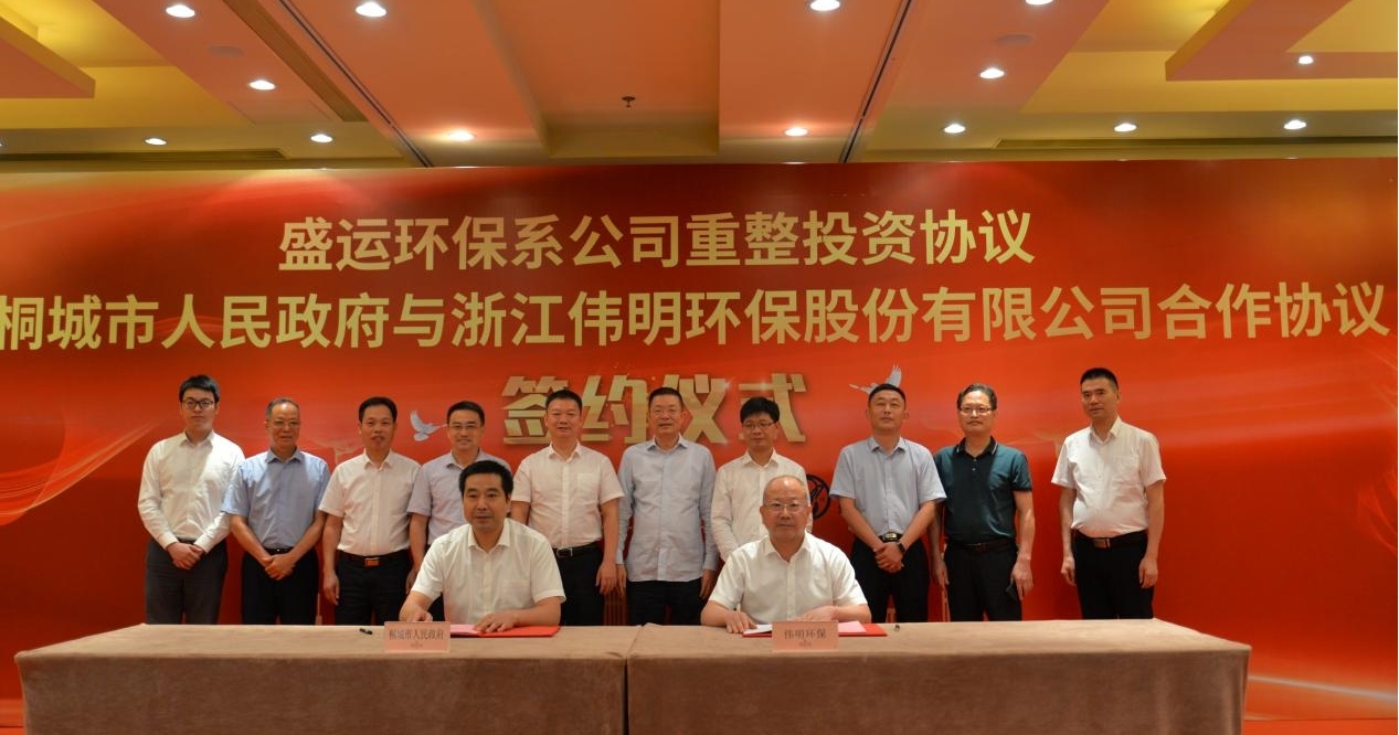 签约仪式上,桂稳成常务副市长、刘玉斌董事长、陈革副总裁代表合作方分别签署盛运环保重整投资协议、桐城市政府与伟明环保合作协议。