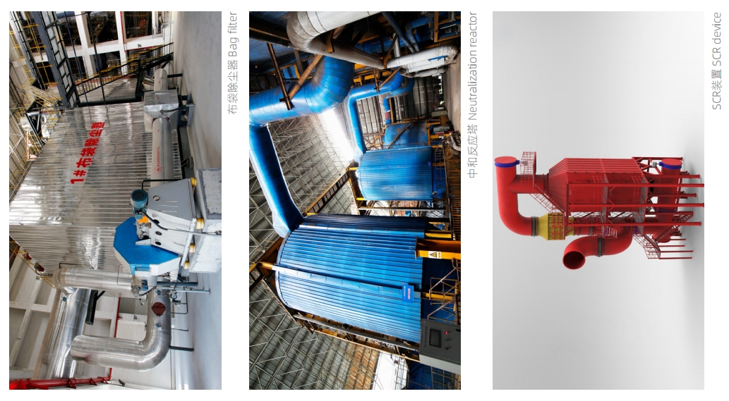 伟明研发的烟气处理系统吸收国外先进的技术,采用国际上先进的“SNCR脱硝+半干法干法脱酸+活性炭吸附+布袋除尘+SCR脱硝+湿法脱酸”组合工艺。该系统由公司自行生产的SNCR脱硝系统、石灰制浆系统、喷雾干燥吸收塔、旋转喷雾系统、干法烟气净化系统、活性炭喷射装置、布袋除尘器、SCR脱硝系统和飞灰输送系统等组成。此外,公司研发的烟气净化系统也可以根据项目要求进行定制服务。