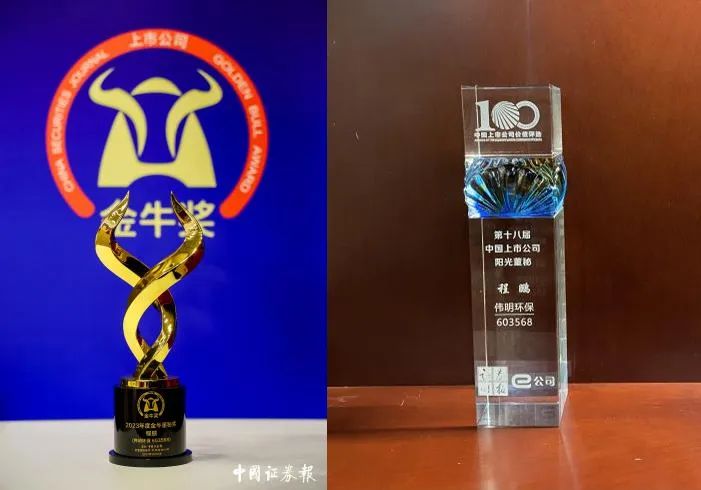 另外,伟明环保副总裁、财务总监兼董事会秘书程鹏先生在上述金牛奖评选和价值百强奖评选中分别斩获“2023年度金牛董秘奖”和“第十八届中国上市公司阳光董秘奖”。
