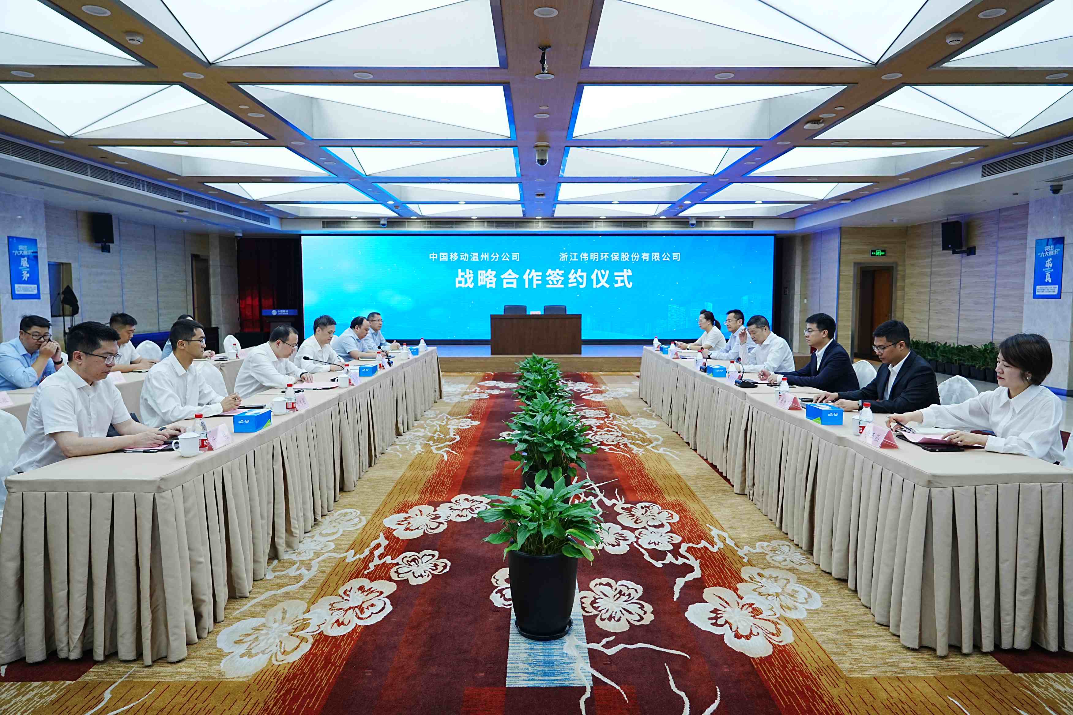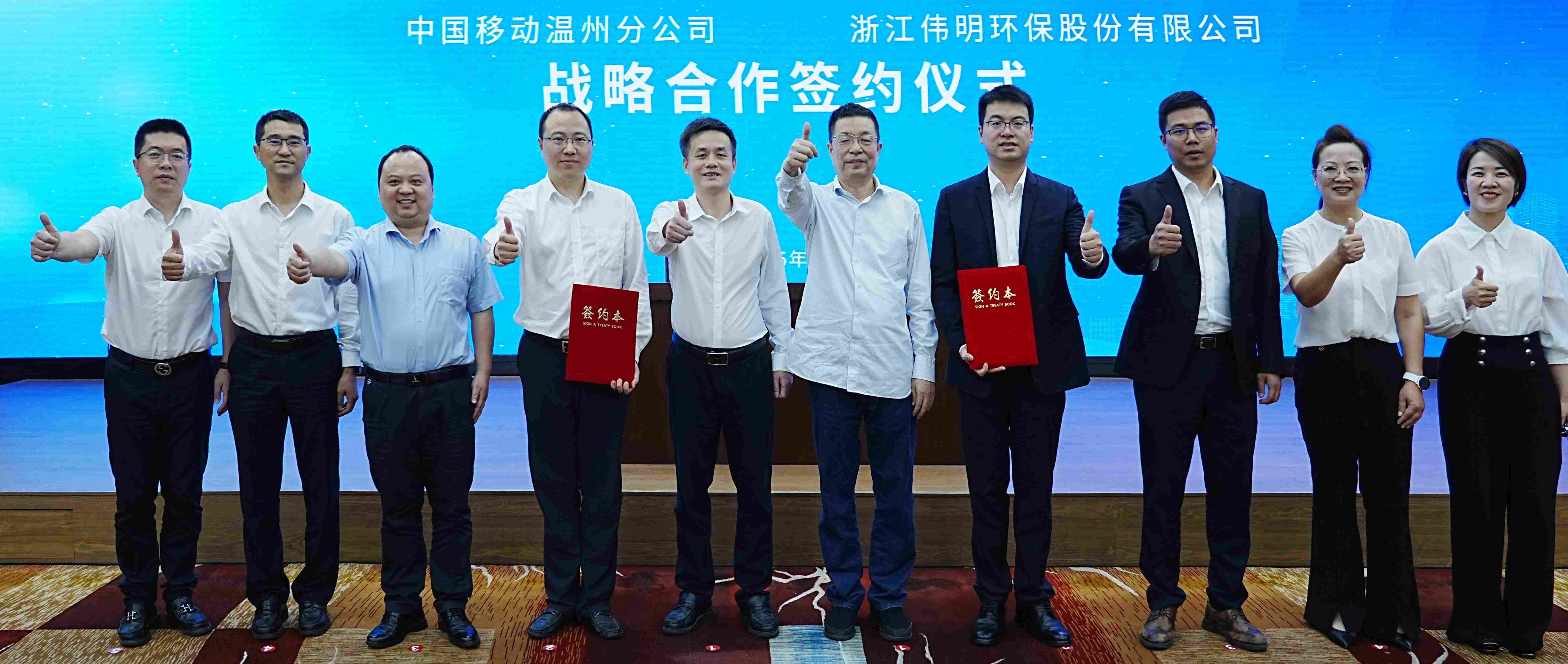 今天下午,伟明环保与中国移动温州分公司战略合作签约仪式在中国移动温州分公司隆重举行。公司董事副总裁项奕豪、中国移动温州分公司副总经理王渊分别代表双方签约,项光明董事长、中国移动温州分公司总经理郑武积出席仪式并见证。